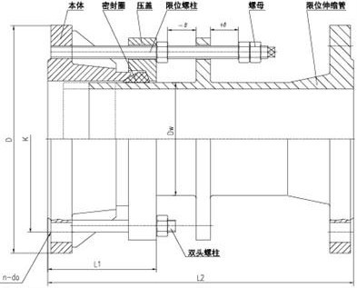 BF型單法蘭松套限位伸縮接頭,產(chǎn)品適用于輸送海水、淡水、冷熱水、飲用水、生活污水、原油、燃油、潤滑油、成品油、空氣、煤氣、溫度不高于250度的蒸汽和顆粒粉狀等介質。 單法蘭松套限位伸縮接頭優(yōu)點:安裝方便快捷、密封可靠、維修方便。